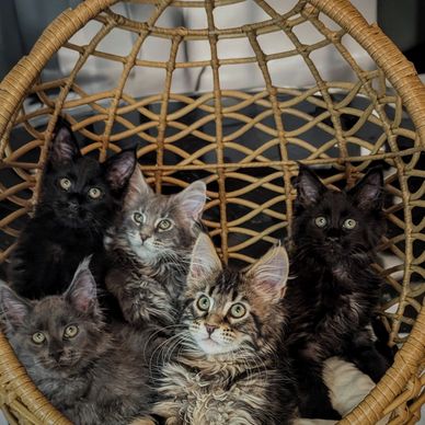 8 years ago we began our journey owning Maine coons. We also own a natural raw pet food company and would venture over to the cat shows with our Maine coons. we learned tons from the breeders there. 4 years ago we began our journey breeding. choosing the best breeders to purchase from and building our house perfect for our cats, along with the best care and health testing. We are very proud of where our cattery has grown to now!